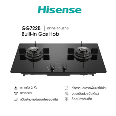 เตาแก๊ส HISENSE รุ่น GG722B พร้อมวงไฟ 3 ชั้นและวัสดุกระจกนิรภัยสีดำ เสริมความสวยงามให้ห้องครัวคุณ พร้อมฟังก์ชันการใช้งานที่ปลอดภัยและสะดวก คำตอบของการประกอบอาหารที่ต้องการทั้งความทนทานและประสิทธิภาพ